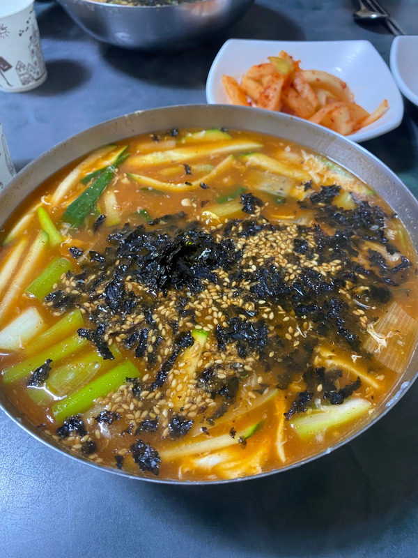 특히 겨울철 찬바람을 뚫고 도착했을 때 속을 따뜻하게 도와주는 장칼국수입니다.